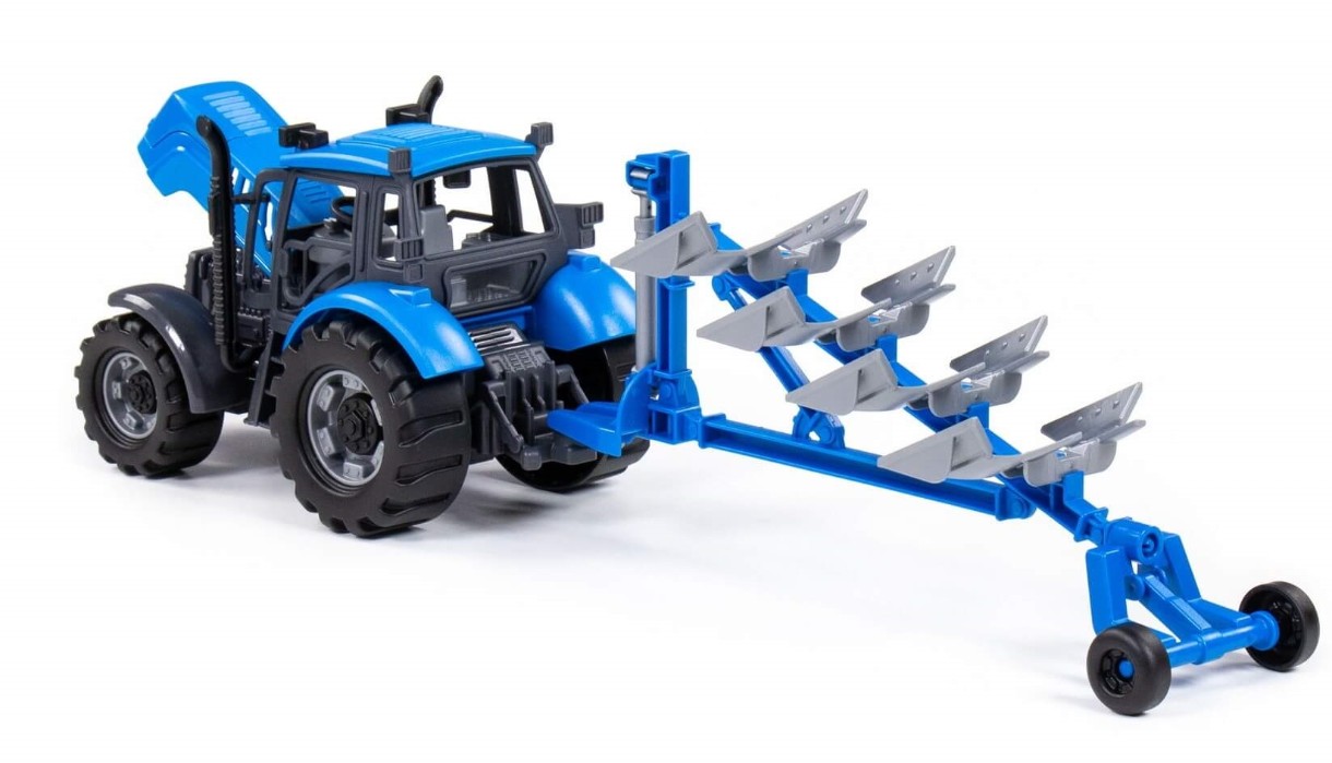 Трактор «Прогресс» инерционный от фабрики «Полесье» - это игрушечный аналог реальной спецтехники. Конструкция трактора выполнена максимально детализировано, Капот трактора может быть зафиксирован в открытом положении для «починки» во время игры. Наличие прицепа с плугом, «рабочие» стороны которого можно менять, позволит разнообразить сценарии детских игр. Трактор оснащен инерционным механизмом, который повышает проходимость на разных поверхностях. Играть с ним увлекательно как дома, так и на свежем воздухе. Поставляется игрушка в яркой коробке.