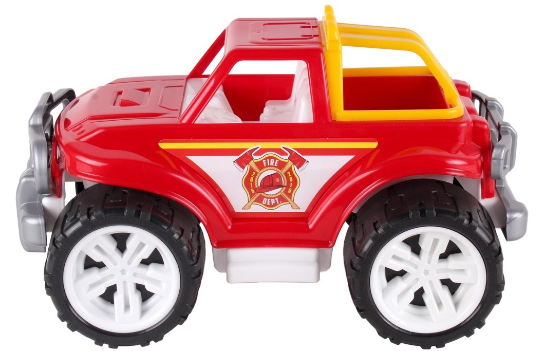 Игрушечный внедорожник (пожарная машина) с открытым кузовом, массивными бамперами- «кенгурятниками» и большими колесами - уменьшенная копия своего "старшего" собрата. Изготовлен из высококачественного, экологически безопасного пластика с европейскими стандартами. Игрушка отличается ярким современным дизайном и предназначена для детей в возрасте от 3-х лет. Оптимальные размеры для использования как в комнате так и для игры на улице. Устройте Вашему малышу незабываемый праздник, подарив ему давно желанный джип. Подарок принесет немало положительных эмоций и родителям, ведь радость ребенка - главная награда.