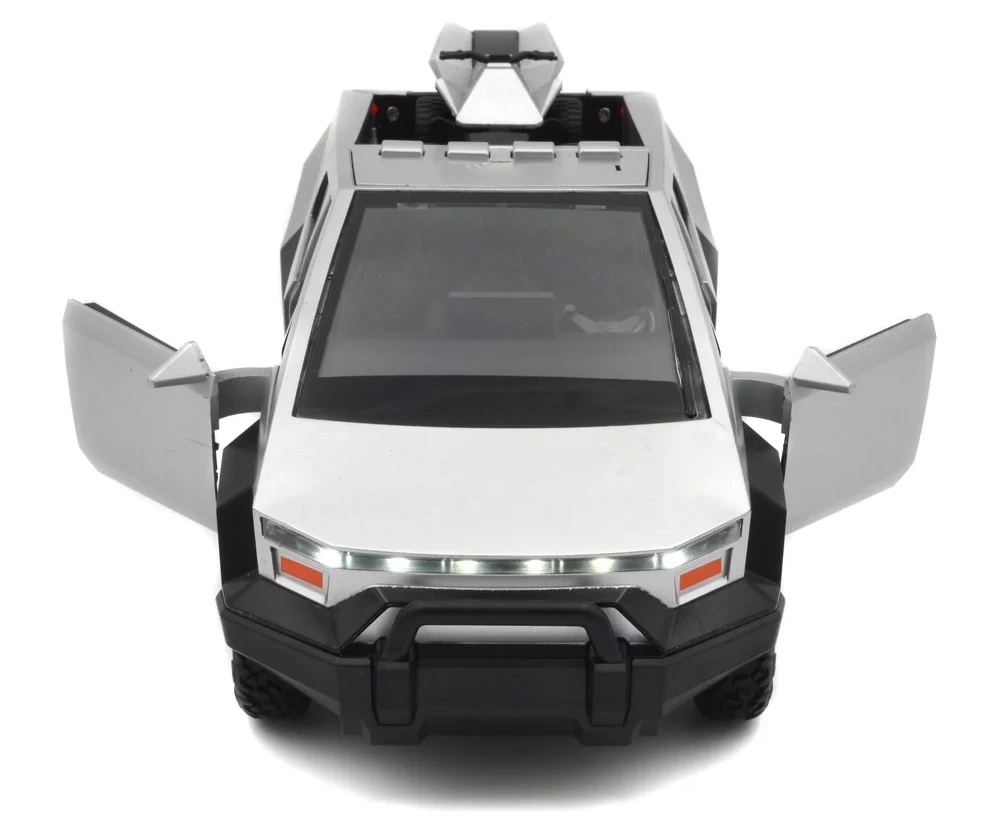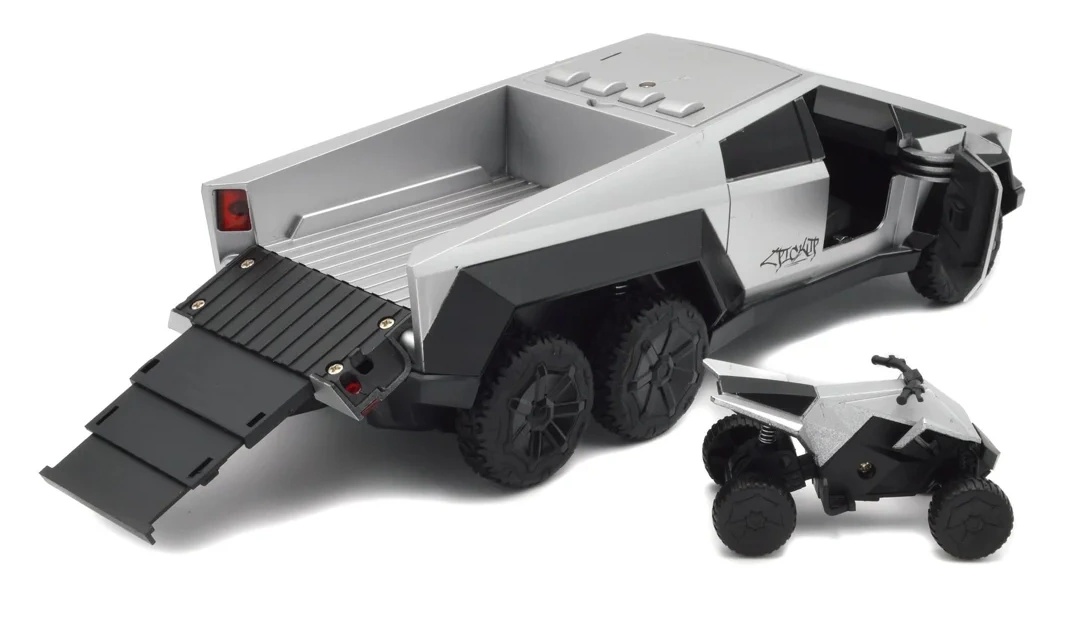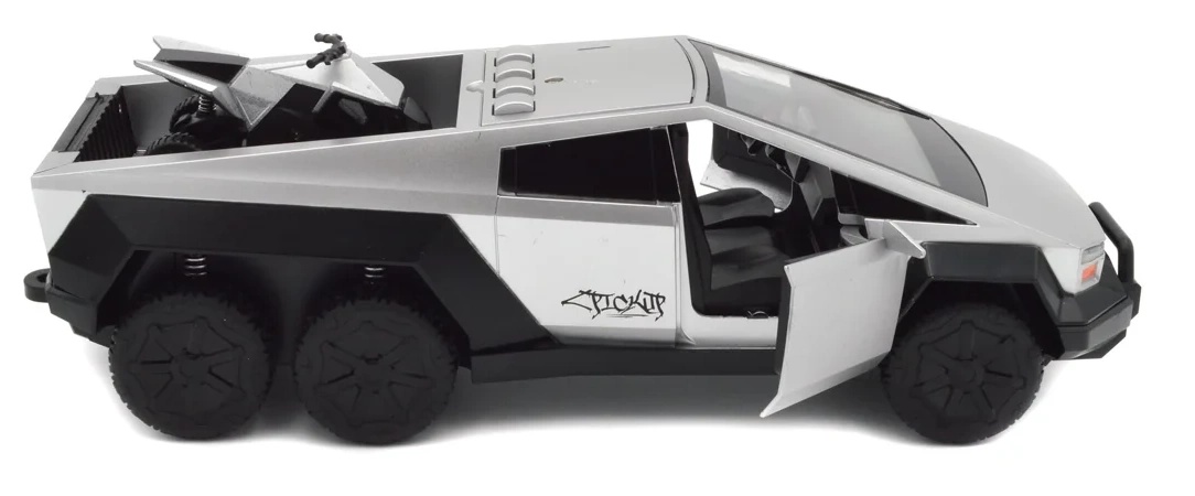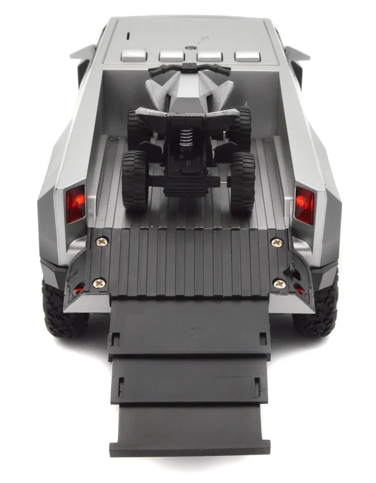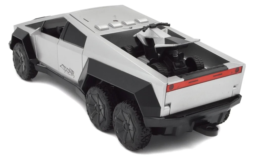 Инерционная машинка Wenyi Cybertruck на шести колёсах, со светом и звуком, масштаб 1:16 — это эффектная и современная игрушка, которая сразу привлекает внимание своим стальным цветом и футуристичным дизайном. Модель оснащена инерционным механизмом , позволяющим машине двигаться без батареек. Открывающиеся двери , откидной задний борт , а также световые и звуковые эффекты , управляемые кнопками на крыше, делают игру максимально реалистичной и увлекательной.