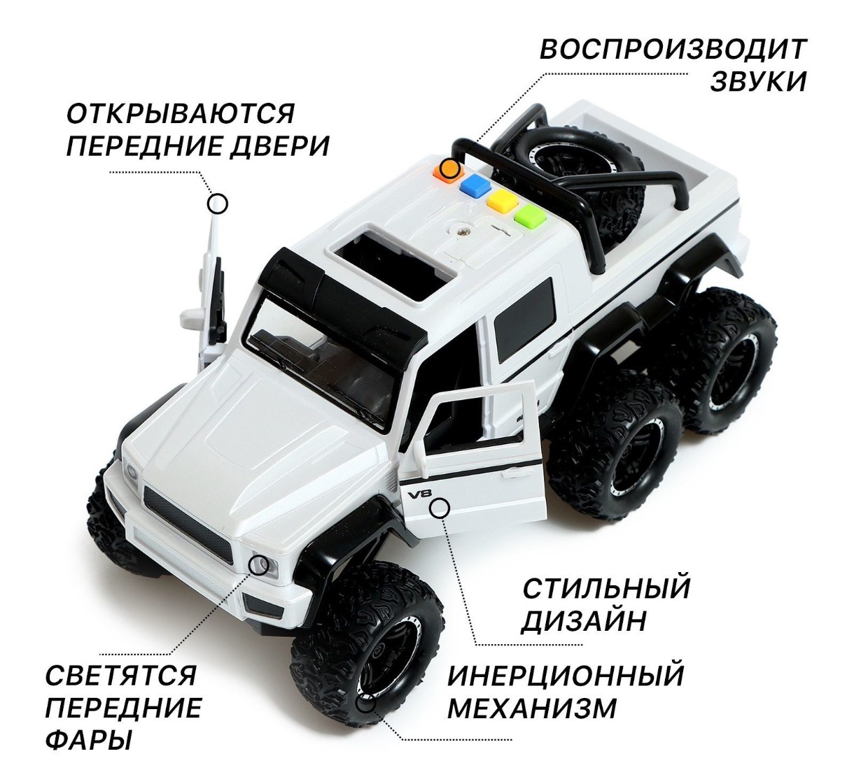 Воспроизводит звуки: работающего двигателя, заднего хода, сигнала и сигнализации.