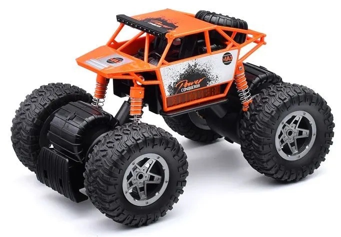 Инерционный механизм движения. Подвеска с амортизаторами. При нажатии на крышу звук мотора и подсветка. Свет и звук работают от 3-х батареек "AG13" (входят в комплект для демонстрации) Материал: пластик. Резиновые покрышки. Соответствует требованиям безопасности продукции. Для детей от 3-х лет.