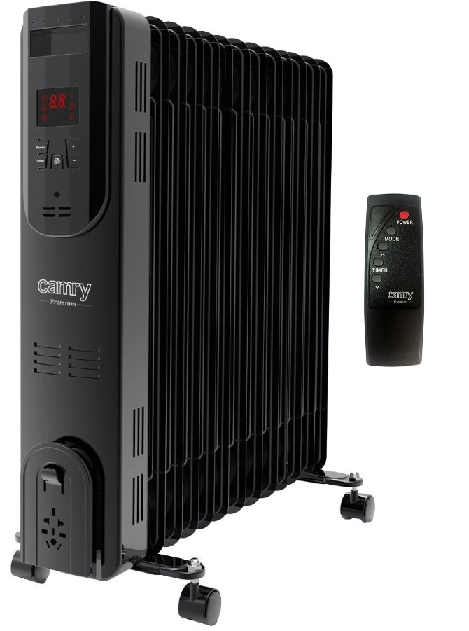 Мощный масляный обогреватель с дистанционным управлением и светодиодным дисплеем. Он позволяет обогреть помещение, где радиаторы отсутствуют или недостаточно эффективны. Обогреватель дает возможность регулировать температуру в диапазоне 15°С — 35°С, имеет 3 уровня мощности. Для безопасности использования устройство оснащено защитой от перегрева. Обогреватель имеет элегантный дизайн, поэтому его можно разместить в гостиной или в офисе. Устройство имеет пульт дистанционного управления. Модель CR 7814 имеет 13 нагревательных секций и мощность 2500 Вт.
