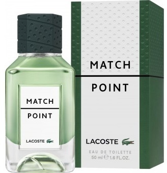 Lacoste Match Point — парфюмерная вода класса люкс с фужерно-зеленым древесным ароматом для мужчин, представленная в 2020 году брендом Lacoste из Великобритании. Впечатляющая и захватывающая мужская новинка — аромат невероятной свежести и энергетики, призывающий следовать своим инстинктам и действовать без сомнений и промедления. Зелеными пряными акцентами базилика и розового перца, свежими взрывными цитрусовыми аккордами сладковато-горького грейпфрута открывается аромат, наполняясь в центральных нотах пирамидки композиции пряным травянисто-камфорным запахом эфирного масла мускатного шалфея, оригинальными цветочными оттенками герани и горечавки. Сдержанный элегантный шлейф аромата Match Point мягко струится благородными древесными нотами экзотического кашмерана и влажно-землистого ветивера.