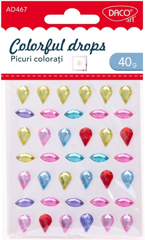 Цветные декоративные капельки DACO AD467- это элементы декора, которые добавят яркие акценты в ваши творческие проекты. Их выразительные формы и насыщенные цвета подходят для украшения открыток, блокнотов, фоторамок или других поделок и школьных работ.