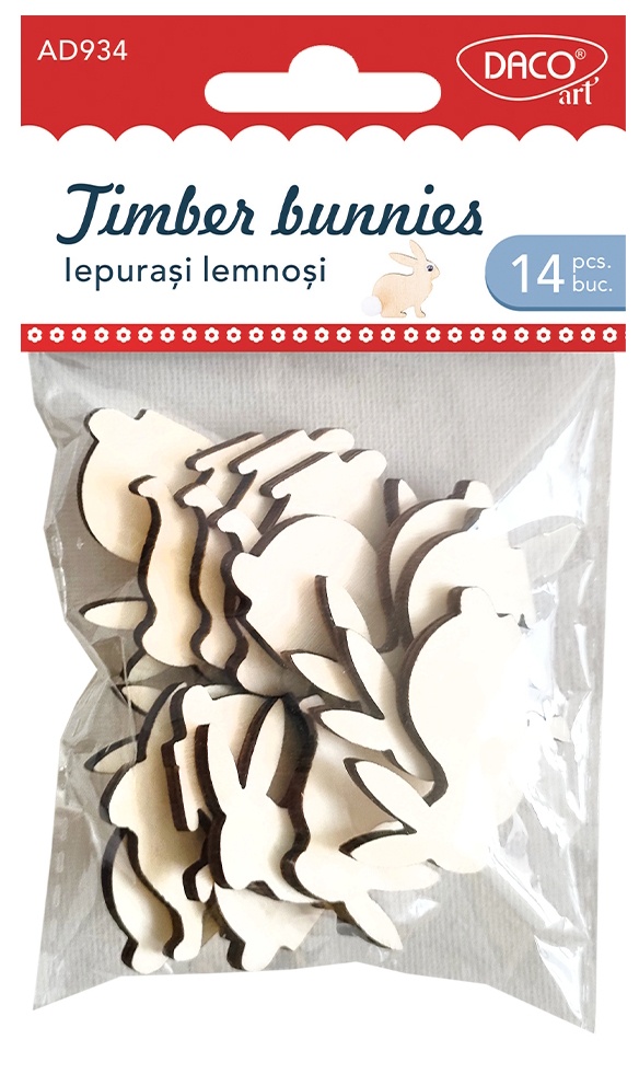 В набор входят 14 очаровательных деревянных кроликов размером 3 х 4 см каждый. С помощью этих аксессуаров вы сможете воплотить в жизнь свои творческие проекты, добавив им нотку тепла и естественности. Деревянные кролики DACO привнесут деревенский и аутентичный штрих в каждое творение, будь то украшения, поздравительные открытки или поделки своими руками.