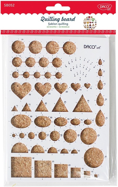 Шаблон для квиллинга DACO SB052- это универсальный инструмент для техники квиллинга, позволяющий создавать точные и ровные формы из бумажных полосок. В набор включено 52 различных шаблона, которые дают возможность создавать цветы, спирали, геометрические и декоративные элементы для любых проектов.