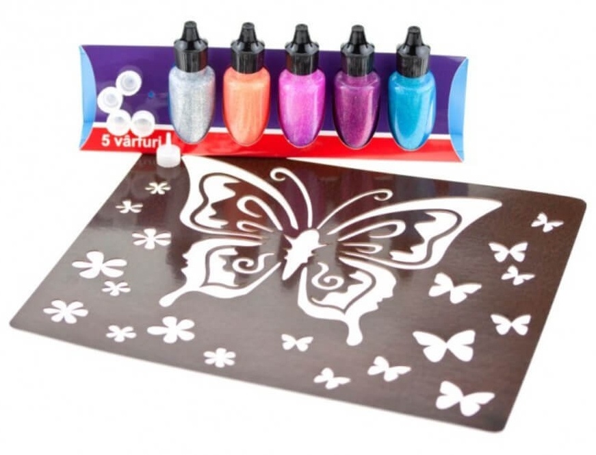 Комплектацияшаблон, 5 тюбиков клея с блестками, 5 насадок для тюбиков