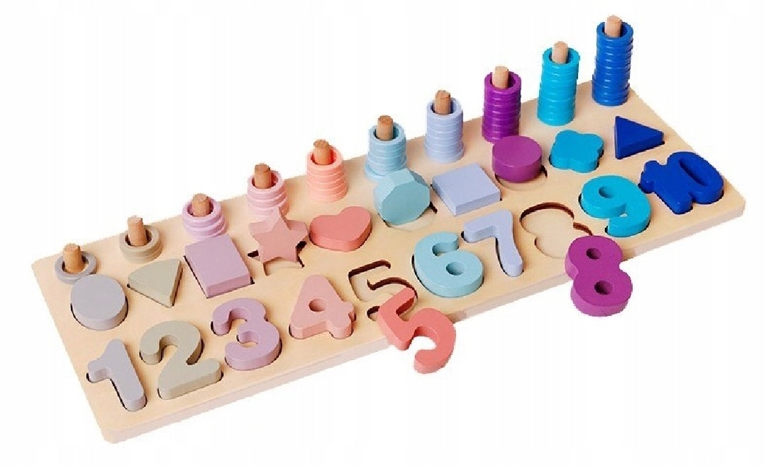 Деревянная игрушка с разноцветными деревянными счетами-пирамидкой предназначена для раннего развития детей. Задача малыша - собрать из цветных сегментов пирамиду, подобрав детали по размеру и по цифрам.