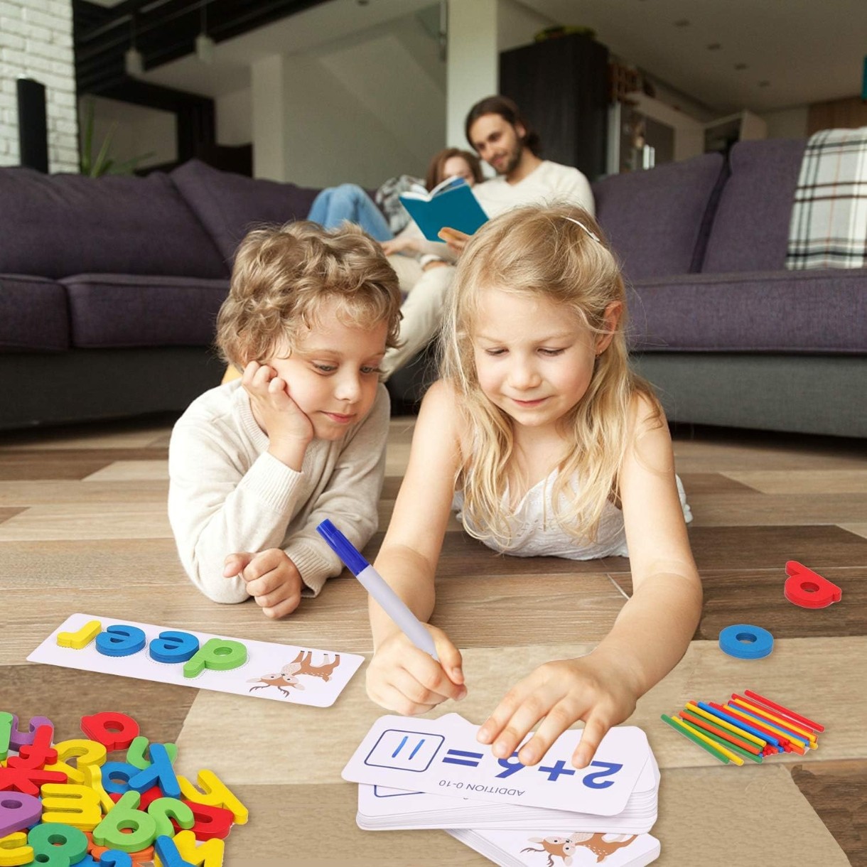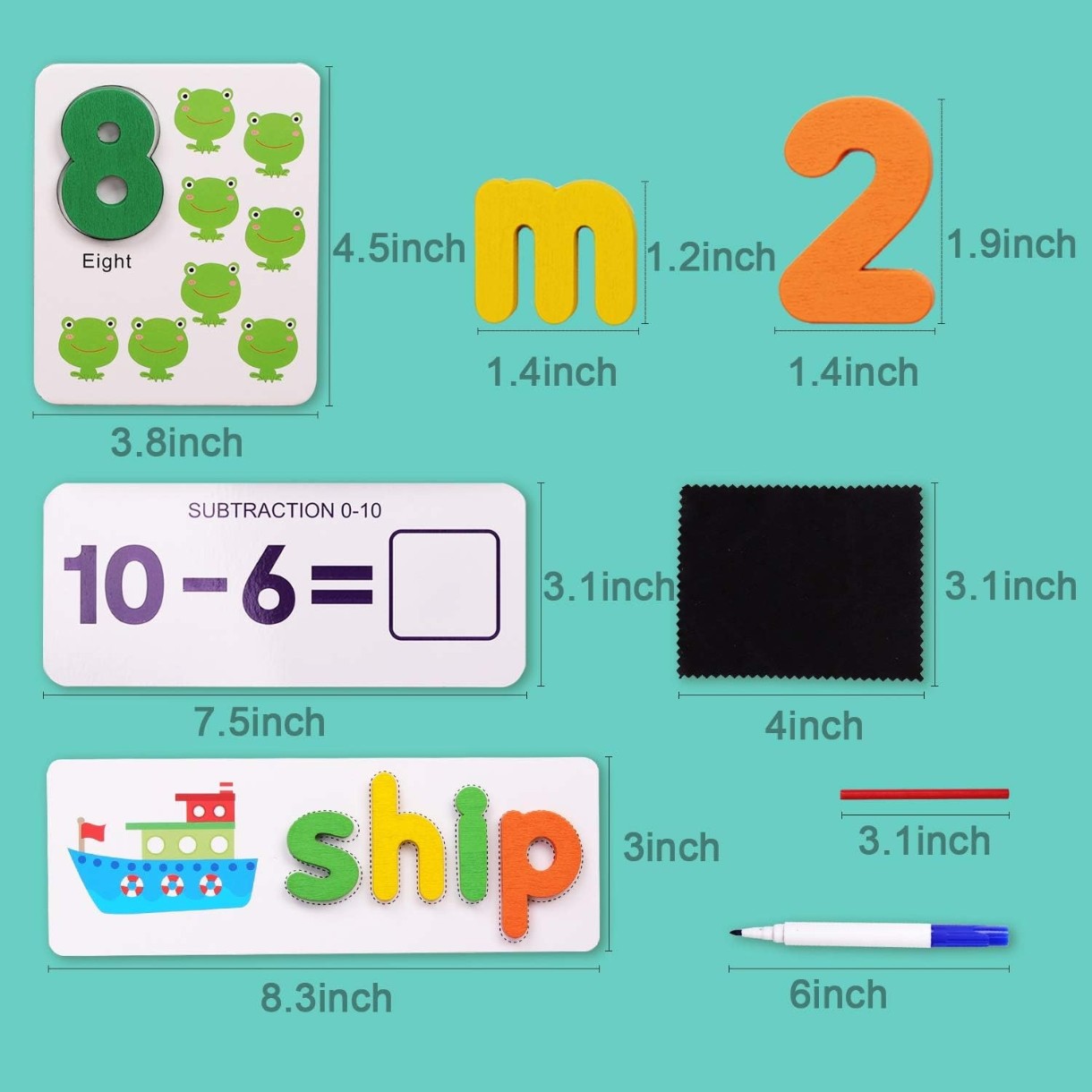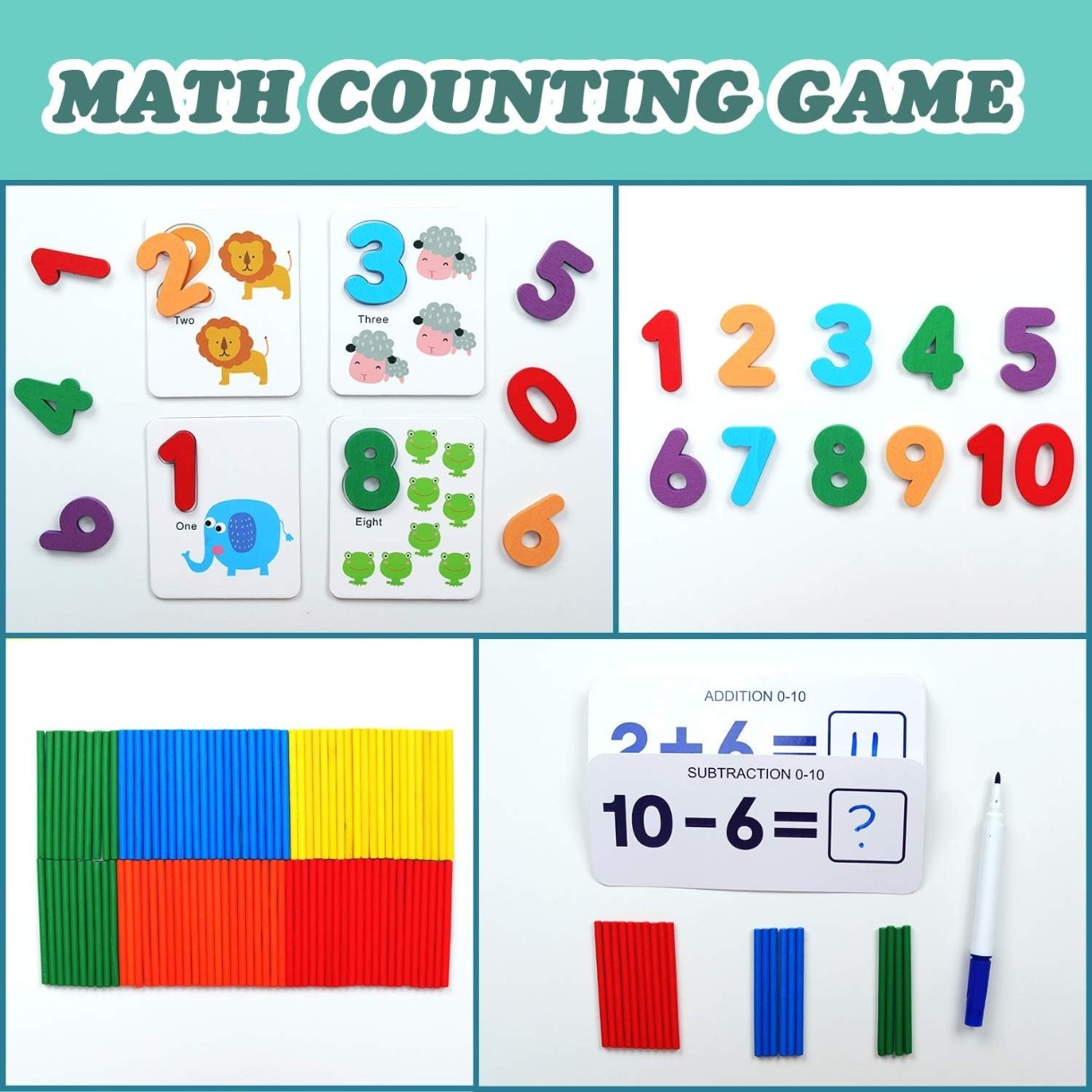 Набор создан для обучения деток счёту и решению простых арифметических задач. С карточками-примерами и вашей помощью ребёнок сможет научиться считать.