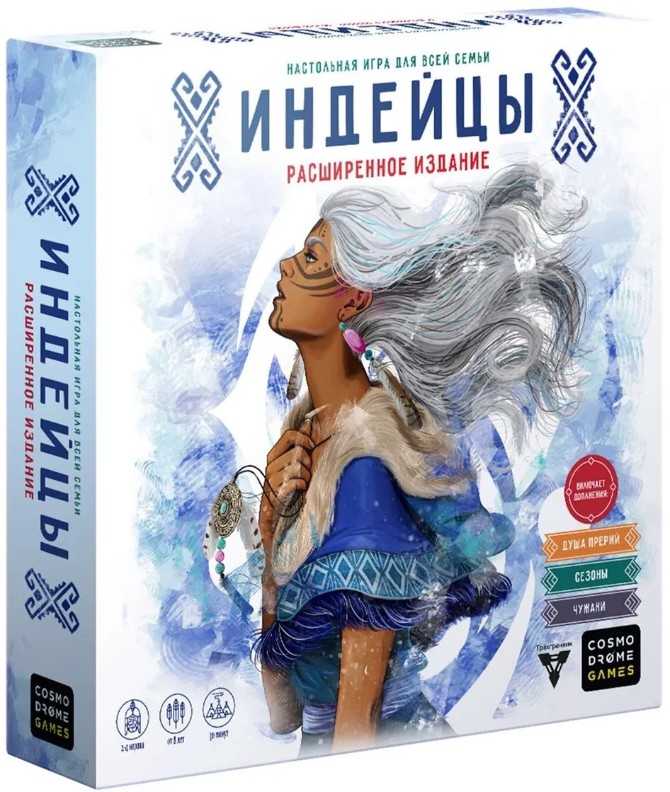 Специальное издание "Индейцы" включает в себя супер-обложку на коробку, которая защищает от повреждений, с обновленной "зимней" иллюстрацией. Также в наборе есть 5 эксклюзивных карт с нейтральными индейцами, новым тотемом и правила к обновленной версии. Играть теперь стало еще интереснее.
