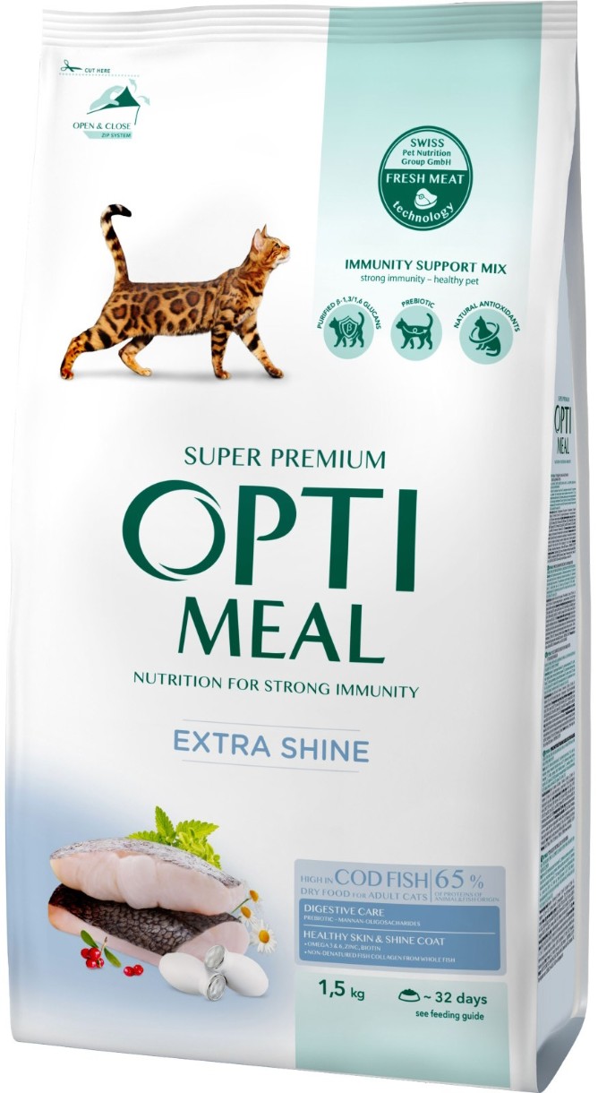 Сухой корм для кошек Optimeal Adult Cat Extra Shine Cod Fish 1.5kg