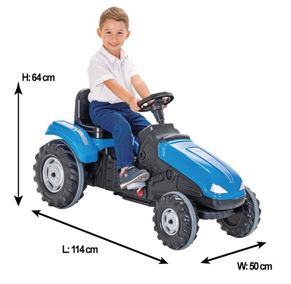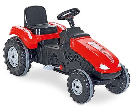 Трактор имеет стильный внешний вид, эргономичный дизайн и поставляется в трех цветовых исполнениях: зелёном, синем и красном. Комплектующие педального трактора изготовлены из экологичных материалов, не вызывают аллергию, не имеют запаха и полностью безопасны для здоровья ребёнка.