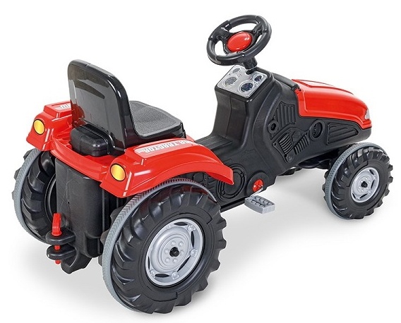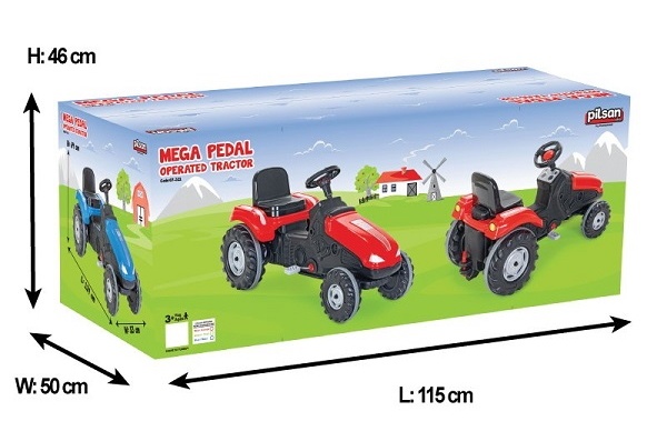 Педальный трактор Pilsan Mega (07321) предназначен для мальчиков и девочек от 3-х до 7-ми лет. Цепной привод на заднюю ось позволят достигнуть удобства и плавности, аналогичной велосипедной. Рулевое управление реализовано при помощи запатентованного механизма. Руль оснащен клаксоном. Сиденье имеет уникальное запатентованное крепление с 6-тью позициями регулировки. Максимальный вес ребенка может достигать 60 кг.