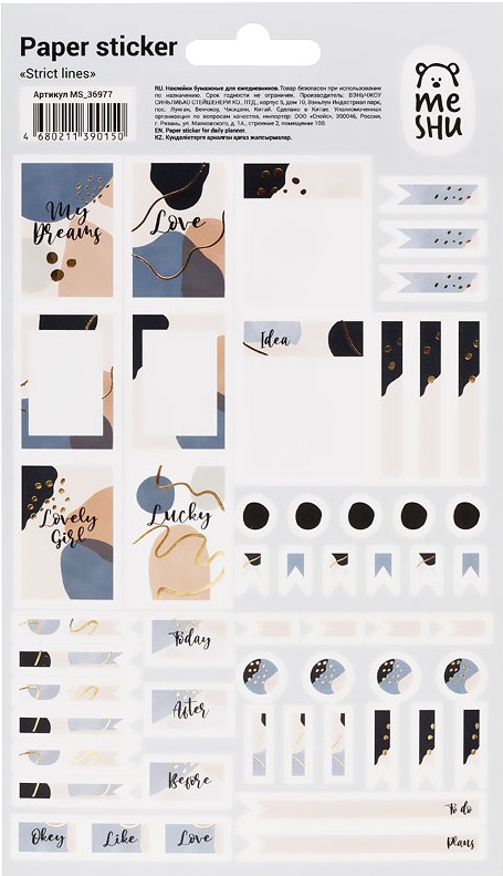 Наклейки для ежедневника Meshu Strict Lines 12*21cm 53pcs (MS_36977)