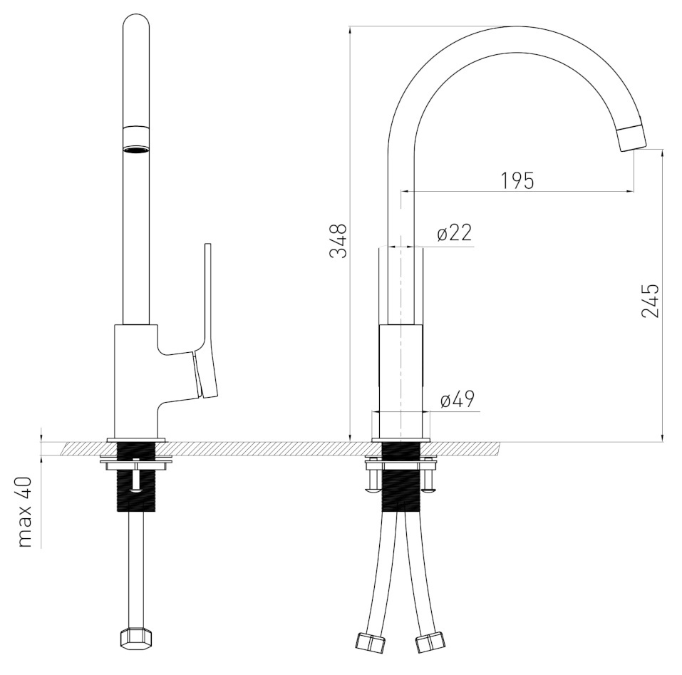 Высота излива245 мм