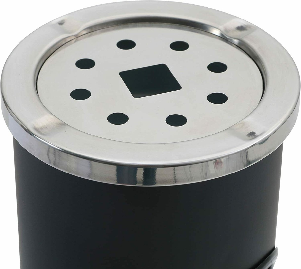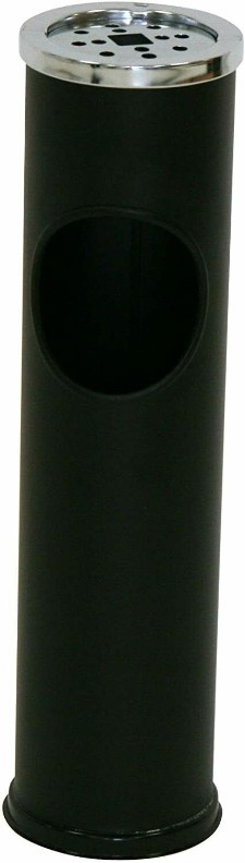 Урна-пепельница для напольного размещения. Изготовлена из высококачественной листового металла и пепельницей сверху из нержавеющей стали. Окрашена порошковой краской черного цвета. Коллектор для отходов компактный, элегантный и высокого качества. Урна пепельница имеет боковое отверстие для мусора и пепельницу сверху. Верхний контейнер для окурков с антипригарным покрытием. Боковое отверстие для безопасности обрамлено резиновым кольцом. Основание для устойчивости оснащено утяжелителем и резиновой накладкой.