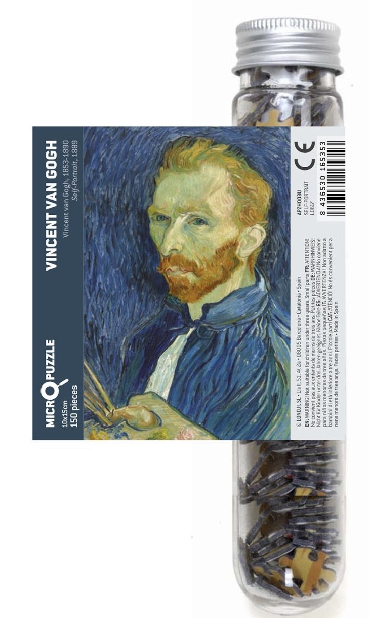 Игра-микропазл от Londji - это прекрасно иллюстрированная мини-головоломка, состоящая из 150 крохотных кусочков, которые можно хранить в удобном футляре для путешествий. После завершения головоломка оказывается картиной Винсента ван Гога «Автопортрет». Испытайте себя и других с помощью этой сложной головоломки для путешествий в колбе.
