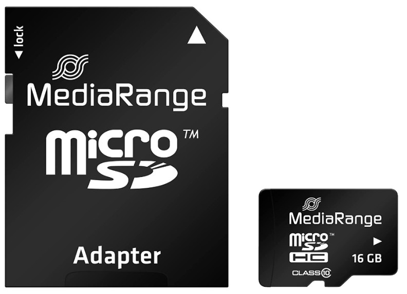 Карта памяти MediaRange microSDHC Class 10 + SD adapter 16Gb (MR958)