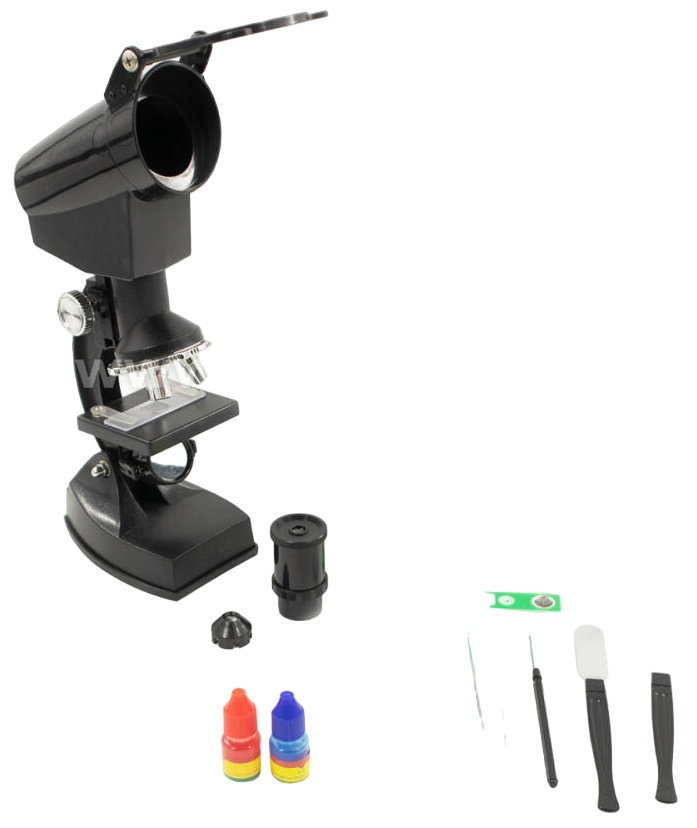 Особенностив наборе: микроскоп, стакан, увеличительная чашка, увеличительное стекло, окуляр, конденсорная накладка на линзу, нож, разделочная игла, пинцет, эозин, экран