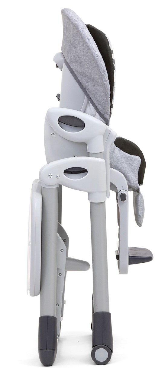 Моментальное складывание до компактных размеров всего лишь при нажатии одной кнопки. 2 больших колеса для удобного перемещения. Поднос можно прикрепить к задним ножкам стульчика, для компактного и удобного хранения.
