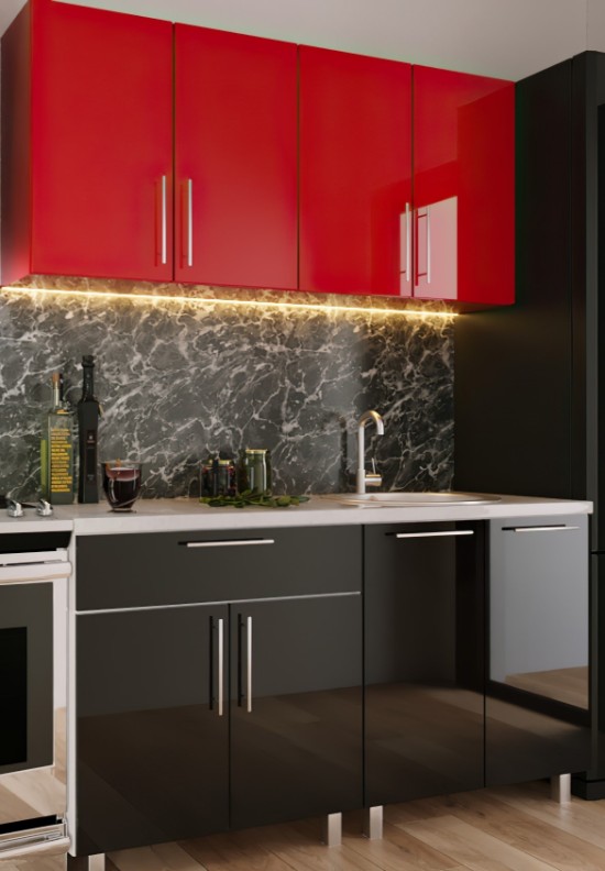 Кухонный гарнитур Bafimob Mini (High Gloss) 1.4m Red/Black