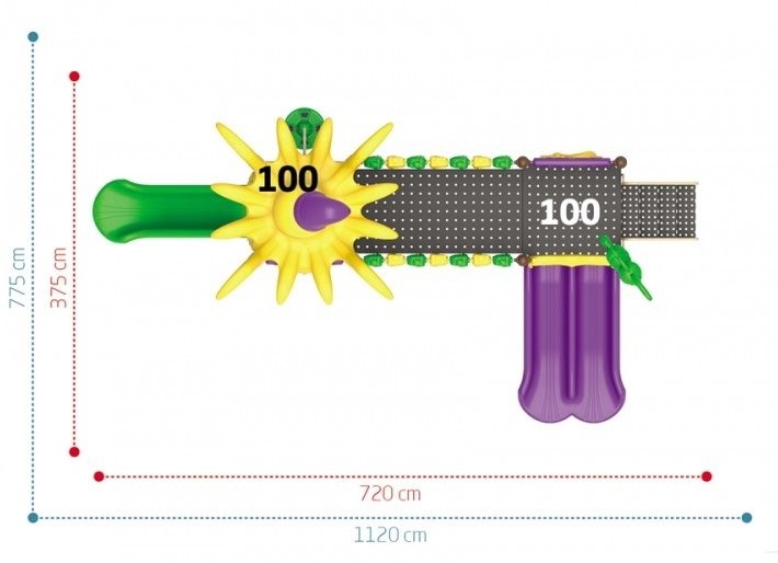 "Minik-102" предназначен для использования на детских площадках общего пользования, для интенсивной эксплуатации. Материал: изготовлен из металлических труб диаметром 114 мм и толщиной стенки 3 мм. Порошковая окраска.