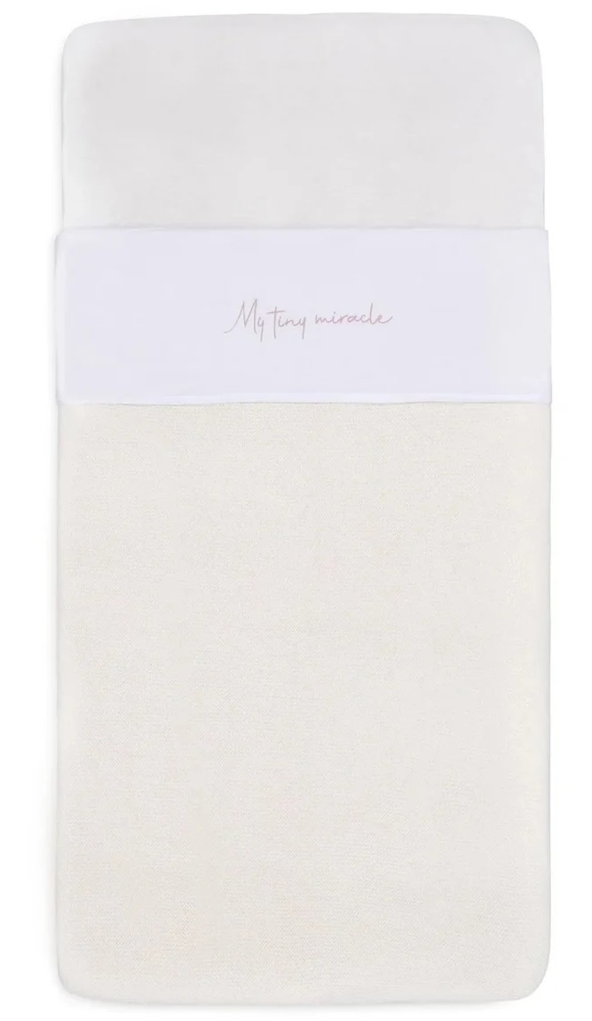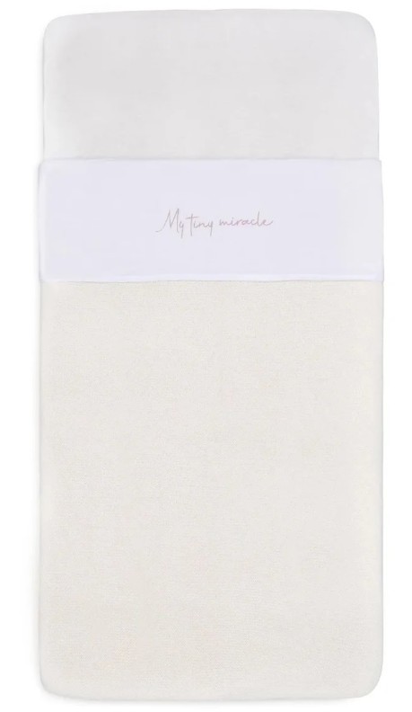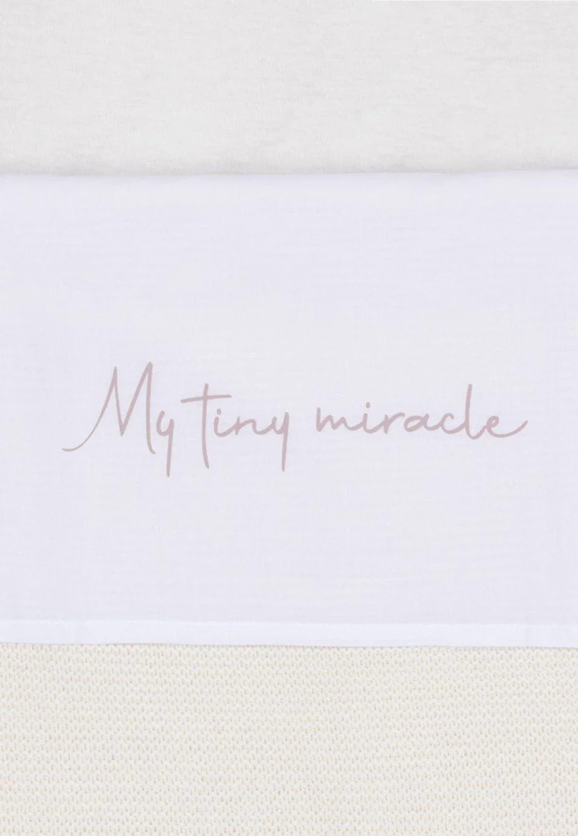 Эта очаровательная простыня станет идеальным дополнением к детской кроватке вашего малыша. На её крае нежно вышита фраза «My tiny miracle», которая делает моменты сна ещё более трогательными. Когда ваш малыш спит под этой простынёй, вид становится ещё более милым.