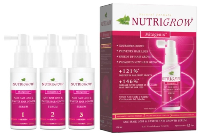 Эффект против выпадения волос и более быстрый рост волос благодаря запатентованному комплексу, богатому пептидами, витаминами и минералами: запатентованная комплексная формула Nutrigrow обеспечивает беспрецедентную защиту от выпадения волос, способствует более быстрому росту волос и утолщает тонкие и хрупкие волосы.