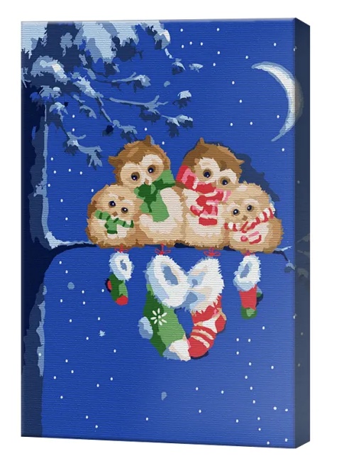 Картина по номерам Art Gallery Premium Рождественское семейство сов CX4789 фото №1 — интернет-магазин Desire.md