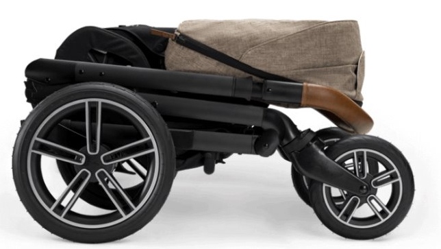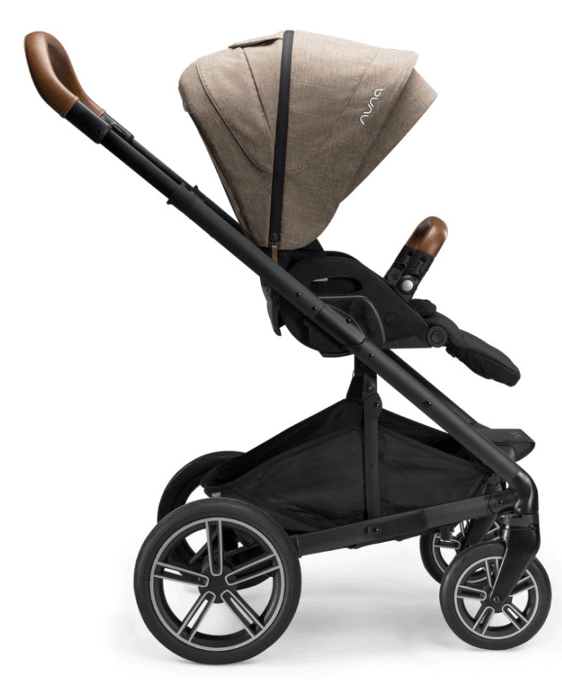 Шасси коляски прочное алюминиевое, складывается компактной книжкой с любым положением прогулочного блока, и к себе, и от себя, что очень удобно. Колеса довольно большие, передние из полиуретана поворотные с возможностью фиксации, задние мягкие из резины с защитой от проколов. При наличии довольно больших колес и хорошей амортизации, Nuna Mixx можно отнести к классу колясок-внедорожников. Ход у коляски, благодаря качественным подшипникам на колесах и амортизирующим пружинам, очень приятный и плавный, не нужно прикладывать больших усилий, этим отличаются все коляски Nuna.