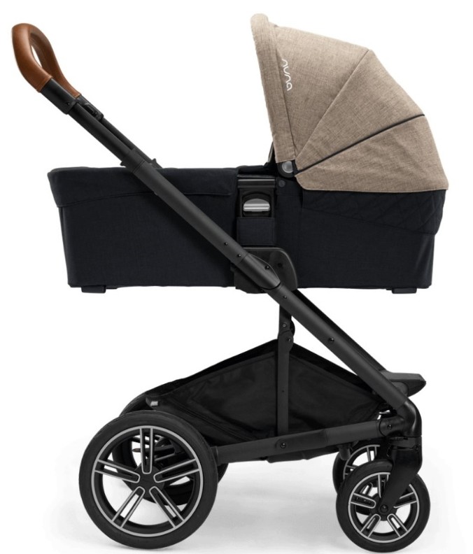 Телескопическая ручка эргономичной формы с покрытием из эко-кожи, регулируется под любой рост родителя. Отдельно стоит сказать о корзине королевских размеров, которая уж точно придется по душе мамам, успевающим заглянуть в магазин во время прогулки. Корзина делится на две части специальным разделителем, имеет удобный доступ к содержимому даже с опущенной спинкой. В качестве аксессуаров в комплекте с коляской идет дождевик на прогулочный блок и адаптеры, на которые устанавливается автолюлька родного производства Nuna и некоторые другие: Maxi-Cosi, Cybex, Joie, BeSafe и др.