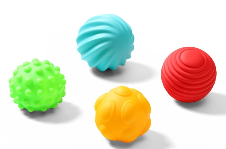 Сенсорные мячи - это сочетание игрушки и развивающего пособия. Они помогают развивать двигательную координацию ребенка и стимулируют развитие органов чувств малыша. В наборе находятся 4 мячика. Каждая сенсорная игрушка отличается по цвету и текстуре. Помимо игры и стимулирования любопытства, они также хорошо подойдут для массажа. Малыш может грызть их во время прорезывания зубов. Они изготовлены из гигиеничного силикона. Сенсорные мячи упакованы в практичную сумку. В ней их можно перевозить или хранить.
