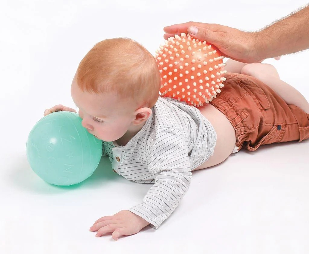 Этот набор сенсорных шариков ярких цветов, подходящий для малышей от 6 месяцев, привлекает внимание малыша. Вы также будете заинтригованы их текстурами! Размер шариков специально разработан для облегчения обращения с ними. Малыш научится бросать, прицеливаться, катать и ловить мяч... и т. д. Идеально подходит для развития навыков и тренировки двигательных функций! Диаметр мяча: 13 см.
