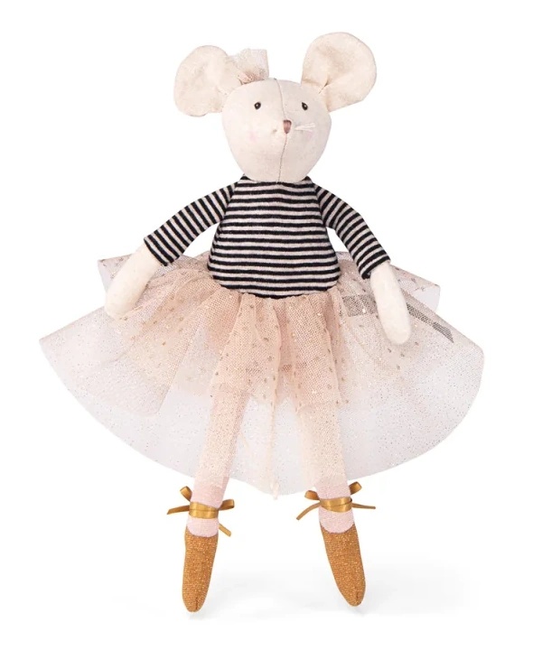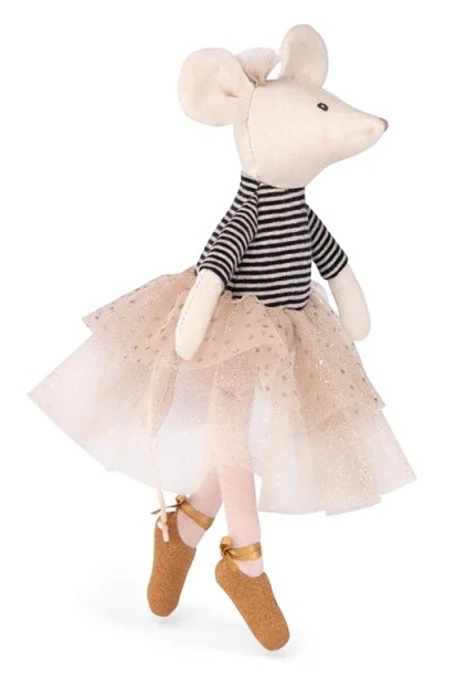 Балерина Мышка Сьюзи из маленькой танцевальной школы. Эта очаровательная кукла Moulin Roty (26 см) носит пачку и полосатый топ. Кое-где ее наряд блестит. Волшебный подарок для маленьких девочек.