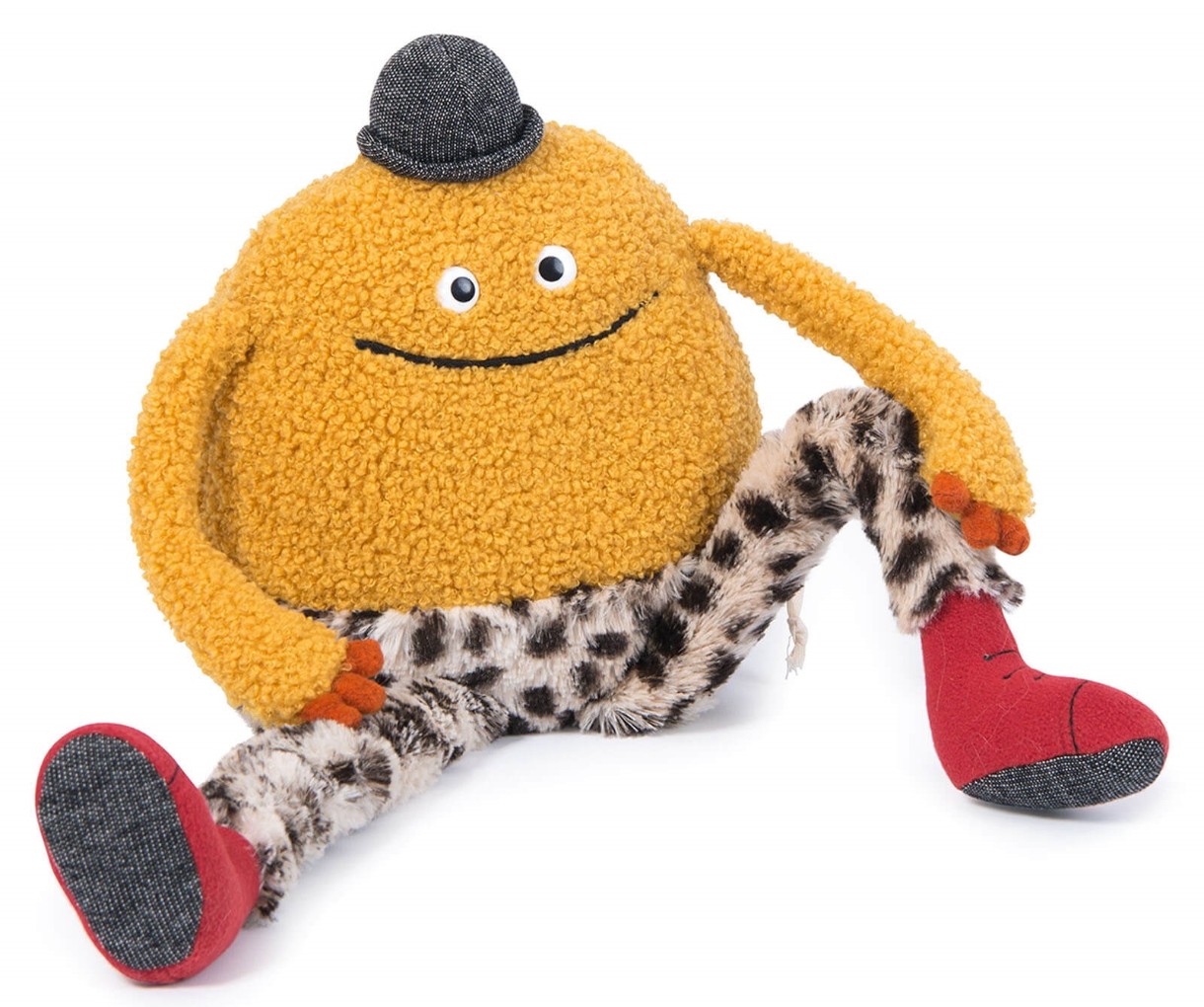 Маунт - симпатичный бархатный монстрик горчичного цвета, который будет нежно сопровождать вашего ребенка и создавать хорошее настроение. На нем леопардовые меховые штаны, маленькая флисовая шапка и красивые красные флисовые сапоги: какой наряд! Мун улыбается своей лучшей улыбкой и широко открывает глаза, что придает ему дружелюбный и веселый вид. Ваш малыш легко поймает его благодаря своим длинным ножкам, нежно обнимет и расскажет свои секреты. Детям постарше понравится эта большая обнимашка размером 50 см благодаря ее оригинальной и привлекательной внешности.