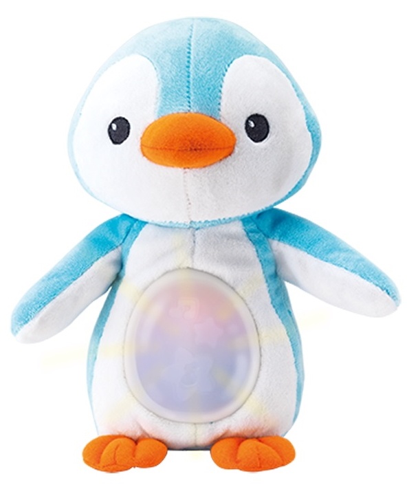 Он играет 4 успокаивающие песни и воспроизводит звуки природы (его можно просто и по-детски включить/выключить, нажав на живот пингвина).