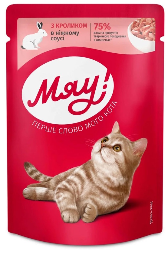Влажный корм для кошек Мяу Кролик в Нежном Соусе 85g