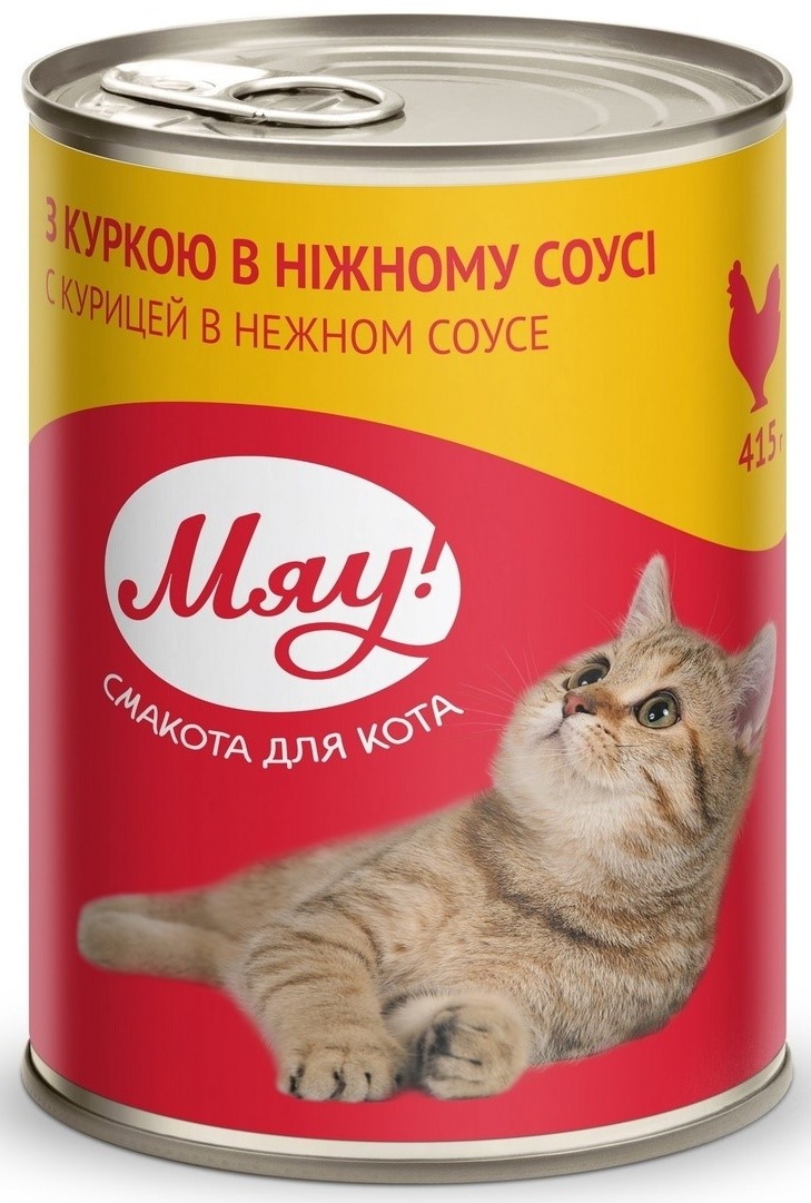 Мяу! для взрослых кошек (Курица в нежном соусе) — полнорационный консервированный корм для взрослых кошек.