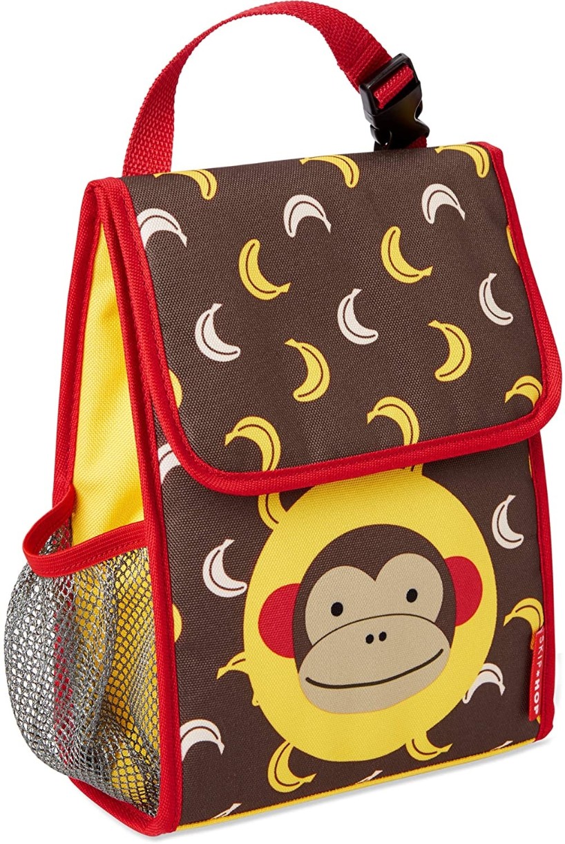 Забавный ланч-бокс Skip Hop отлично сохранит свежесть и вкус продуктов для вашего ребёнка. Сумка с одним отделением изготовлена из прочного текстиля. Лицевая сторона декорирована обезьянкой. Внутренняя поверхность выполнена с помощью термоизоляционного материала, благодаря которому продукты дольше остаются пригодными к употреблению. Изделие закрывается на пластиковую застежку-молнию с удобным держателем на бегунке для маленьких ручек. Внутри имеется сетчатый карман для хранения столовых приборов или салфеток и текстильная нашивка для записи имени владельца сумки. Ланч-бокс дополнен удобной текстильной ручкой с регулируемой длиной и пластиковым карабином. С такой функциональной сумочкой для хранения еды удобно везде: на прогулке, во время учебы, на отдыхе, во время путешествий.