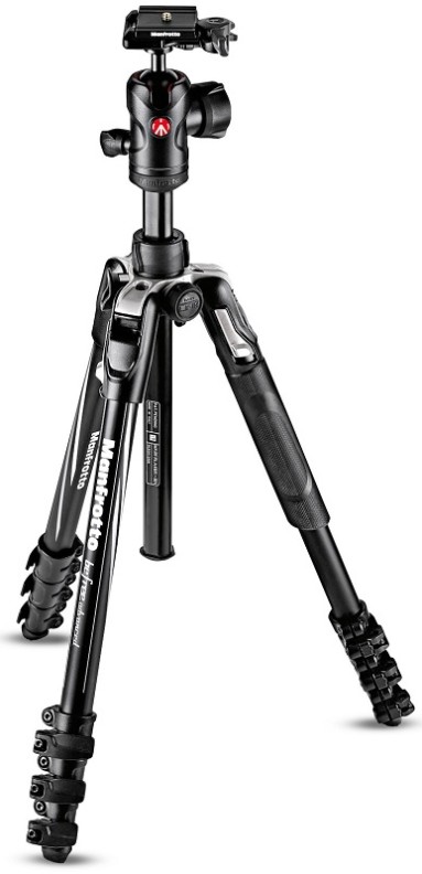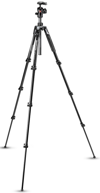 Штатив Manfrotto укомплектован шаровой головкой, подходящей для фото- и видеосъёмки. Она снабжена тремя независимыми элементами управления, отвечающими за панорамирование, регулировку трения и сферическую блокировку. Благодаря этому пользователь может плавно изменять углы поворота и наклона камеры, фиксируя её в оптимальном положении.