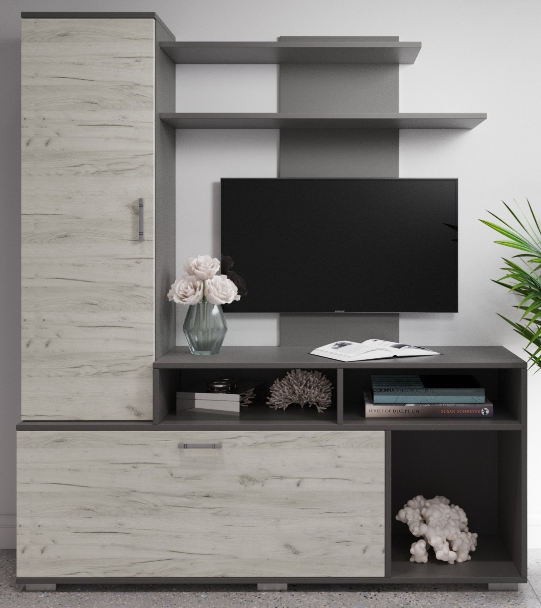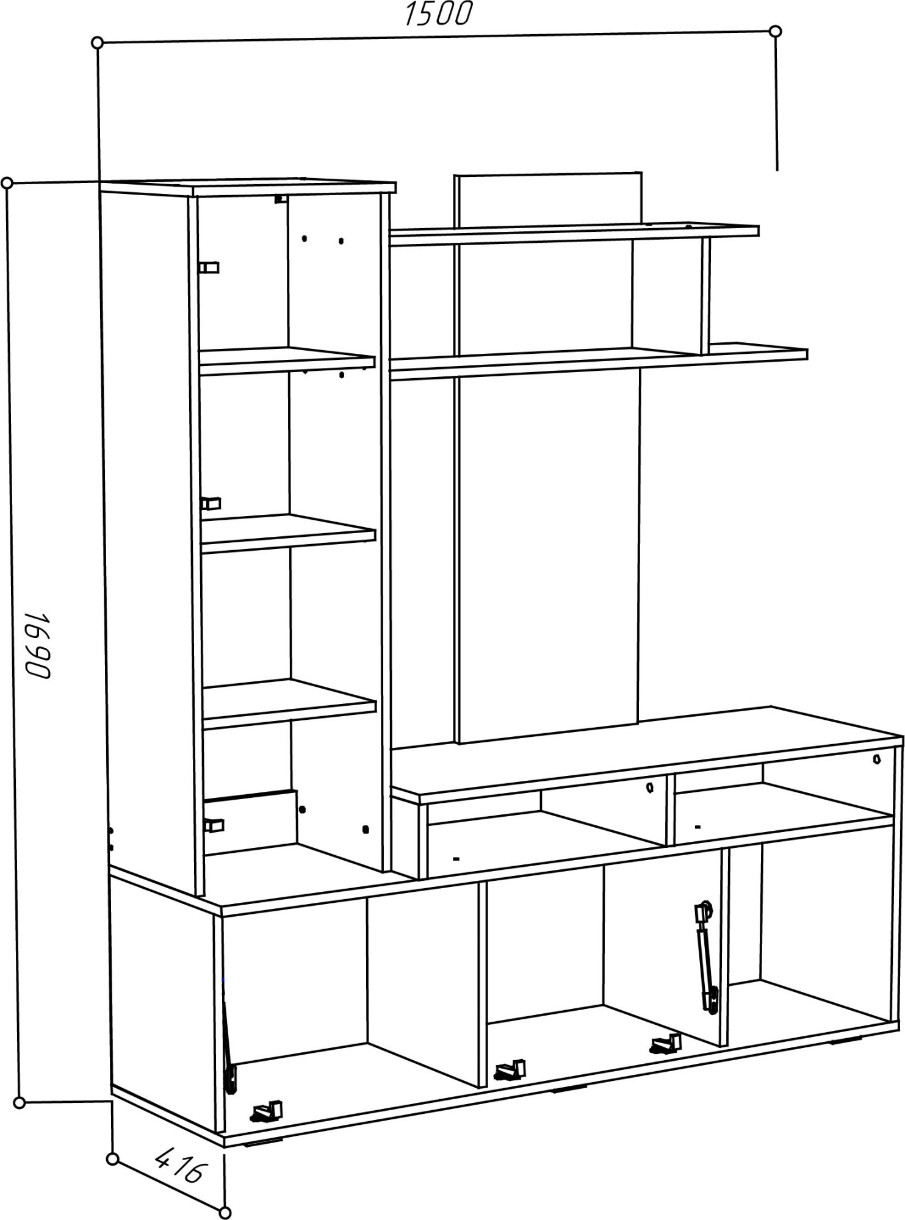 Гостиная ML-Mobila МЛ-4 Поло 5/1500 Дуб Крафт Белый/Антрацит