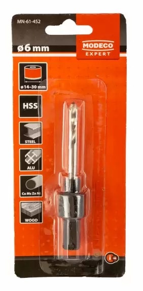 Пилотное сверло для стали MODECO – это надежный и долговечный инструмент, предназначенный для точной обработки стали и других материалов. Оснащено специальным переходником для корончатых фрез, который обеспечивает точное центрирование и гарантирует аккуратное сверление.