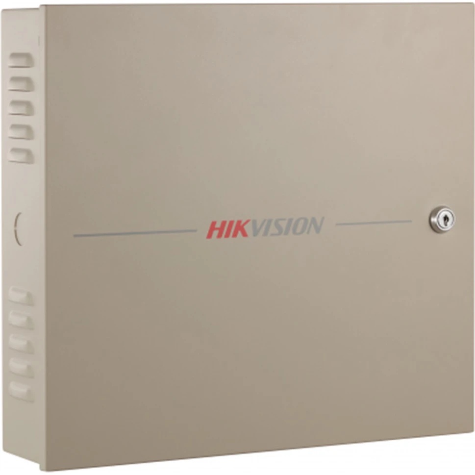 Сетевой контроллер Hikvision DS-K2602T рассчитан на две точки прохода, четыре считывателя, подключенные по RS-485, или четыре — по Wiegand. Поддерживает автономную логику работы — предусмотрена память емкостью 32 Мбайт.
