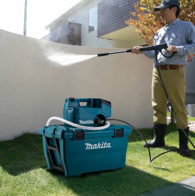 DHW080 — это беспроводная мойка высокого давления, работающая от двух батарей 18 В LXT, отличающаяся транспортабельностью и высокой производительностью мойки, достаточной для очистки автомобилей или сельскохозяйственной техники.