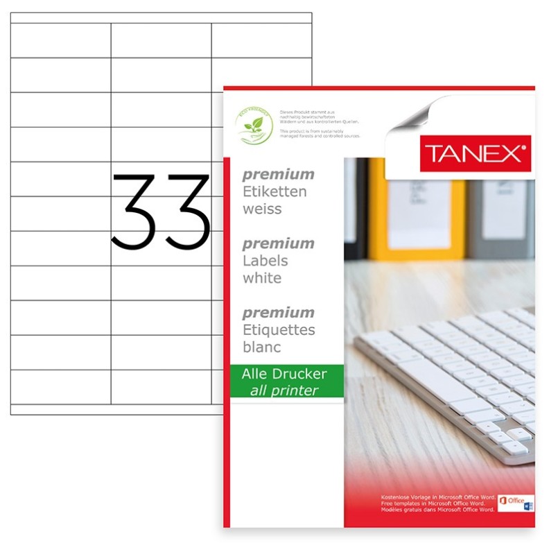 Самоклеящиеся этикетки для принтера Tanex A4/100p 33pcs (TN02133)