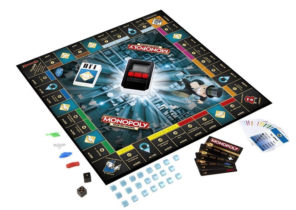 Представляем вашему вниманию легендарную настольную игру - Монополия от Hasbro обновленной версии! Производитель окончательно отказался от бумажных денег: теперь расплачиваться за покупки нужно банковскими картами! В целом же суть игры осталась прежней - скупайте дома и недвижимость, стройте дома и отели, зарабатывайте деньги и выигрывайте!