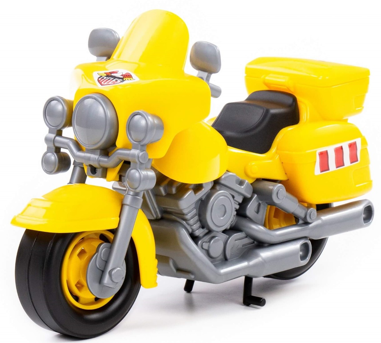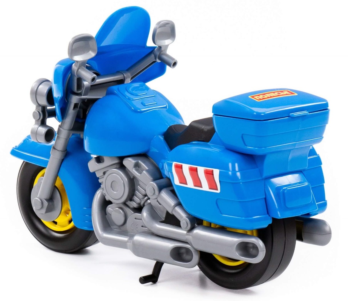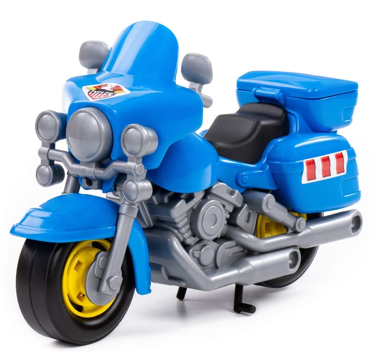 В игрушечном автопарке должно быть место не только для автомобилей, но и для мотоциклов! Фабрика «Полесье» предлагает поиграть миниатюрными моделями байков. Игрушка особенно будет интересна для маленьких лихачей. Дизайн мотоцикла полицейского «Харлей» выполнен максимально правдоподобно. Его можно использовать в качестве средства передвижения игрушечного героя. Руль байка поворачивается, имеются выдвижные/задвижные подножки, крышка багажника открывается. Таким образом, дети знакомятся с разными видами транспорта и находят в них отличия.