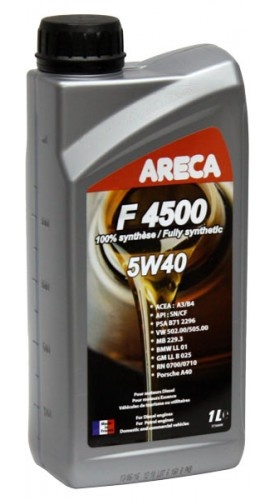 ARECA F4500 ESSENCE 5w-40 - полностью синтетическое энергосберегающее моторное масло для бензиновых и дизельных двигателей (в том числе и с турбонадувом), с повышенными требованиями к совместимости с системами нейтрализации отработанных газов. Увеличенный межсерсвисный интервал (20 тыс. км или 1 год).