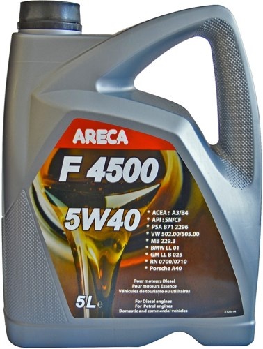 ARECA F4500 ESSENCE 5w-40 - полностью синтетическое энергосберегающее моторное масло для бензиновых и дизельных двигателей (в том числе и с турбонадувом), с повышенными требованиями к совместимости с системами нейтрализации отработанных газов. Увеличенный межсерсвисный интервал (20 тыс. км или 1 год).