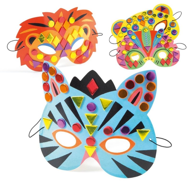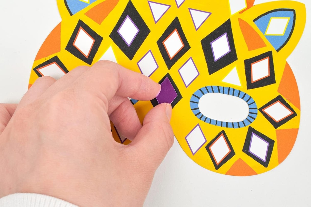 Эти маски, сделанные своими руками, станут хитом любой вечеринки. Отдельные маски можно создать в кратчайшие сроки, и вечеринка может начаться. Наклейки с металлической мозаикой придадут сияющий вид.